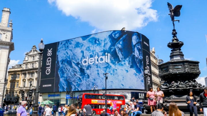 삼성전자가 최근 영국 런던의 랜드마크로 유명한 피카딜리 서커스(Piccadilly Circus) 전광판에 ‘QLED 8K’TV 광고를 시작했다. 피카딜리 서커스는 주변에 유명 관광지가 많아 하루 유동인구가 30만명에 달하는 장소로 광고 노출도가 매우 높다.