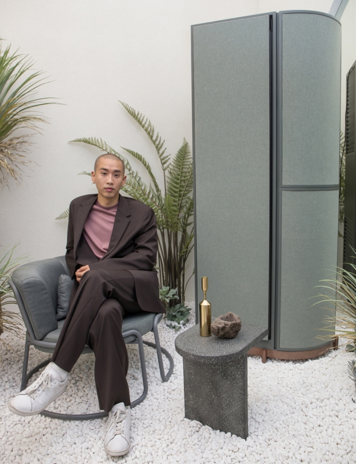 ▲ 아티스트 콜라보에 참여한 문승지 작가가 강남구 도산대로에 위치한 삼성디지털프라자 강남본점에서 맞춤형 가전 비스포크 냉장고로 구성한 작품을 소개하고 있다.