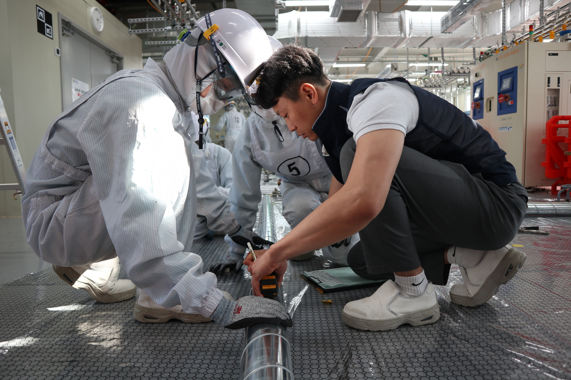 ▲ 삼성전자가 지원하는 ‘반도체 정밀 배관 기술 아카데미’에서 교육생들이 실무 교육을 받고 있다.