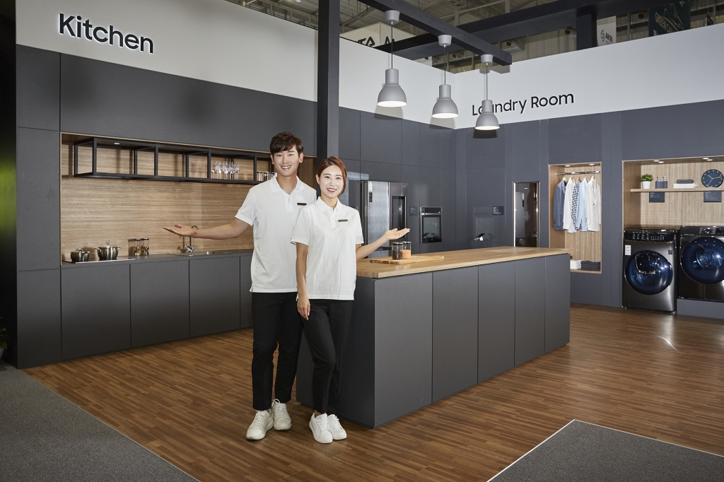 ▲ 삼성전자 모델이 20일부터 22일까지 광주광역시 김대중컨벤션센터에서 개최되는 ‘2019 광주국제 IoT·로봇박람회’에서 삼성전자 홈 IoT·AI 체험형 전시 부스를 소개하고 있다.