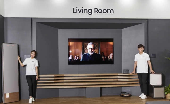 ▲ 삼성전자 모델이 20일부터 22일까지 광주광역시 김대중컨벤션센터에서 개최되는 ‘2019 광주국제 IoT·로봇박람회’에서 삼성전자 홈 IoT·AI 체험형 전시 부스를 소개하고 있다.