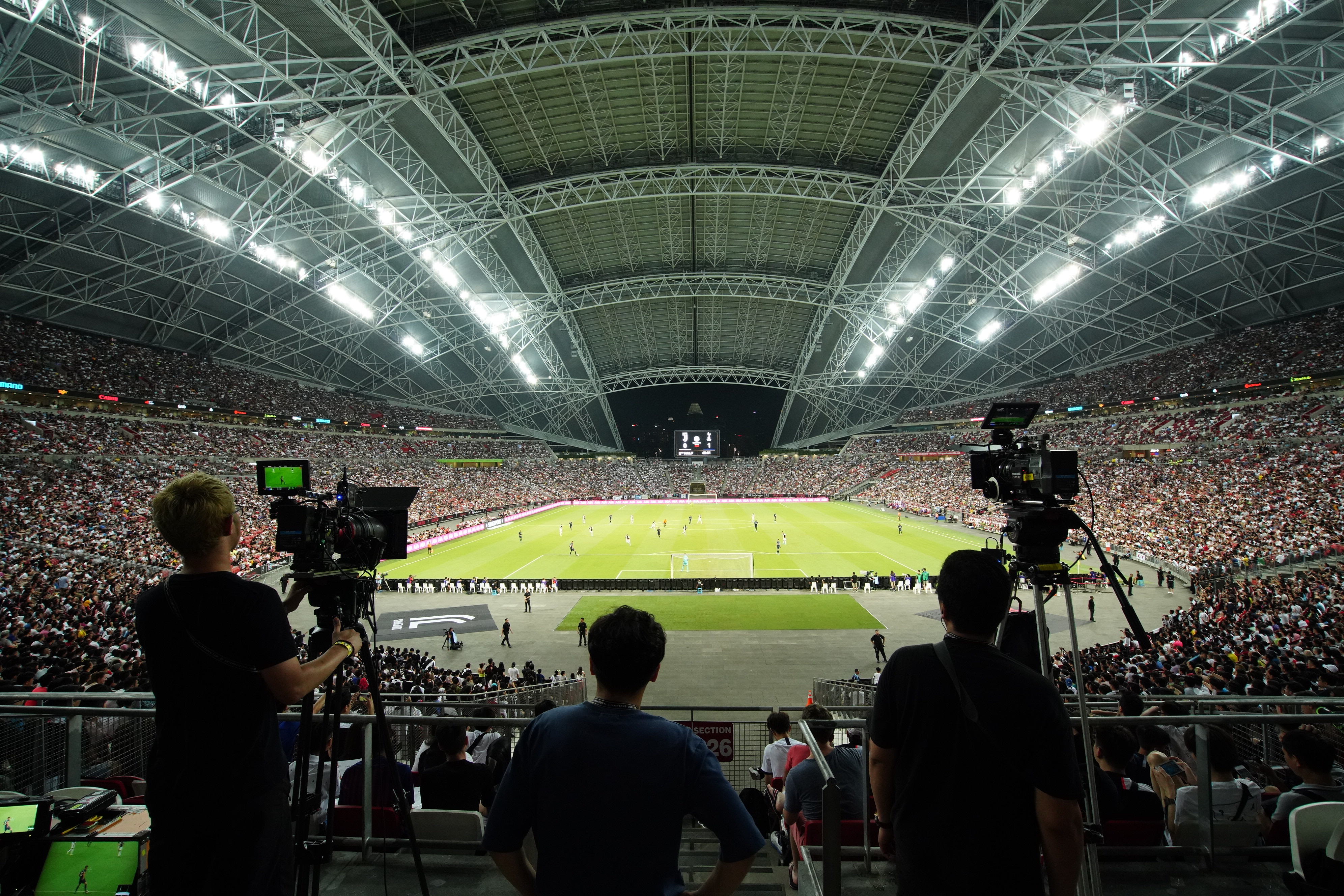 ▲ 삼성전자가 인터내셔널 챔피언스컵 2019(ICC 2019)에 참가하는 세계 명문 축구 구단들의 경기를 8K 카메라로 촬영해 생동감 넘치는 스포츠 현장을 전 세계 소비자들에게 전달한다. 지난 21일 싱가포르에서 열린 인터내셔널 챔피언스컵 토트넘 홋스퍼와 유벤투스의 경기를 8K 카메라로 촬영하고 있다.