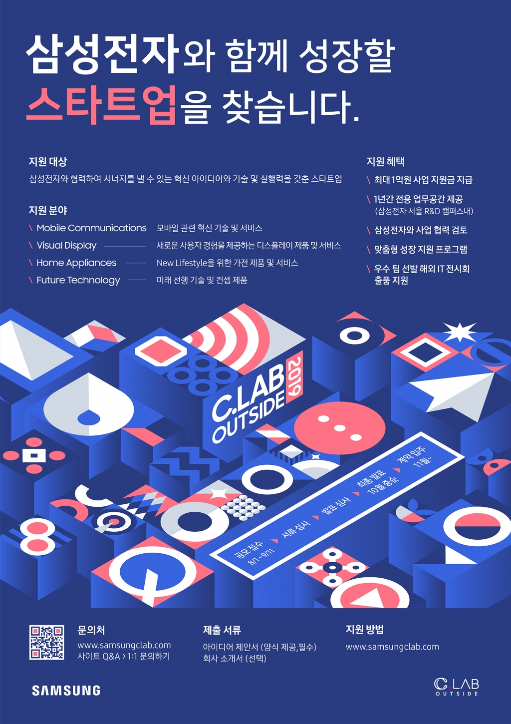 삼성전자가 1일부터 국내 스타트업 생태계 강화를 지원하기 위한 2019년 'C랩 아웃사이드(Outside)' 공모전을 진행한다.