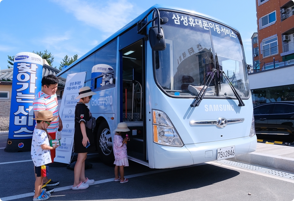 삼성전자서비스의 '찾아가는 휴대폰 점검 서비스'는 휴대폰 점검 장비가 탑재된 이동버스를 고객이 있는 곳으로 파견해 휴대폰을 점검해주는 제도다.