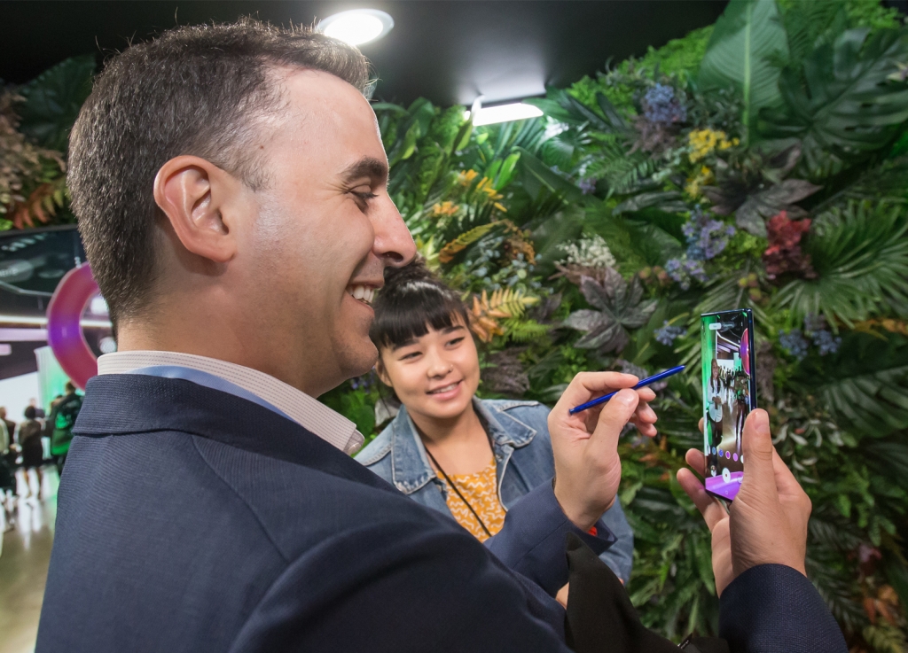 ▲ 7일(현지시각) 미국 뉴욕 바클레이스 센터에서 열린 ‘삼성 갤럭시 언팩 2019’에서 관람객이 제품을 체험하는 모습