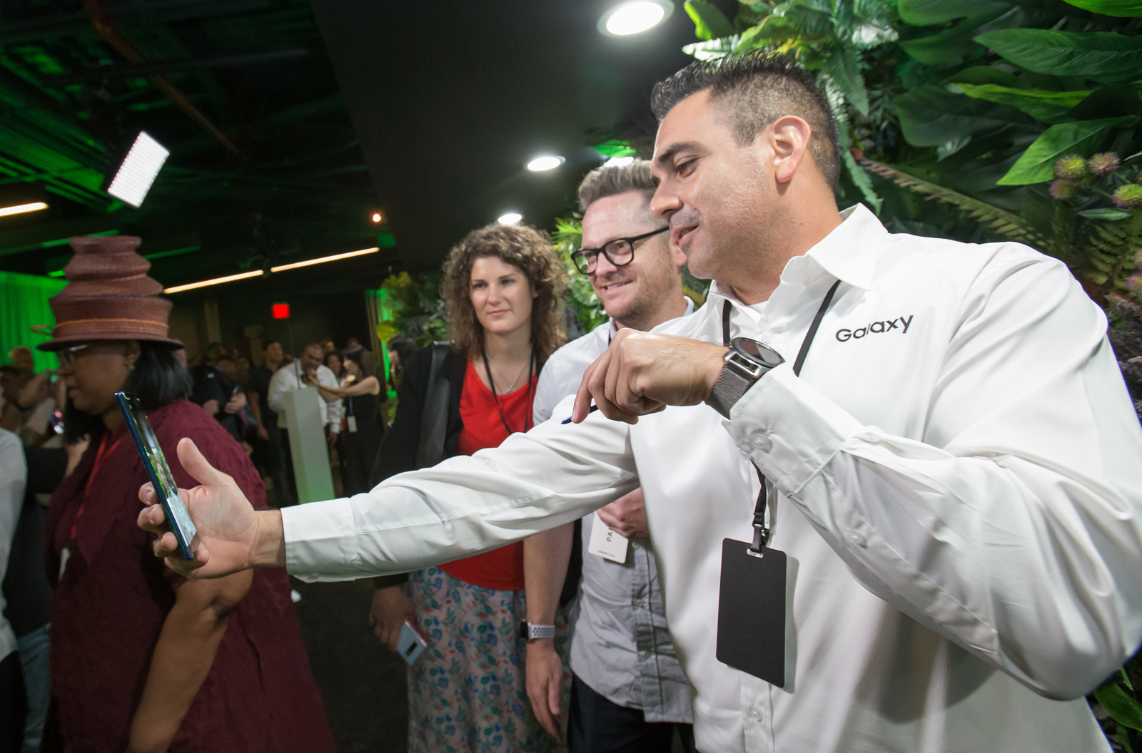 ▲ 7일(현지시각) 미국 뉴욕 바클레이스 센터에서 열린 ‘삼성 갤럭시 언팩 2019’에서 관람객이 제품을 체험하는 모습