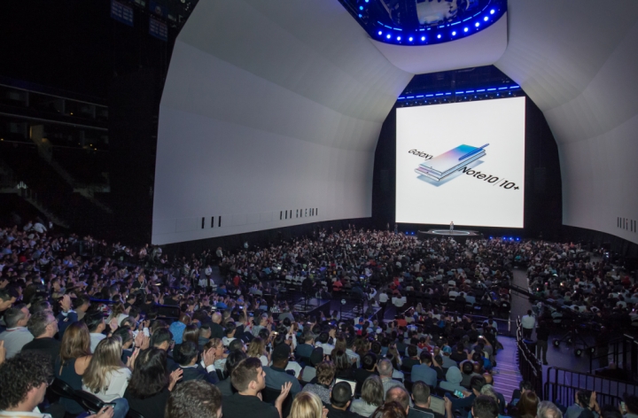 삼성전자가 현지시간 7일 미국 뉴욕 브루클린 바클레이스 센터(Barclays Center)에서 글로벌 미디어와 파트너 등 4,000여 명이 참석한 가운데 '삼성 갤럭시 언팩 2019'를 열고, 한 차원 업그레이드된 성능으로 사용자들의 열정을 실현해 줄 '갤럭시 노트10'을 전격 공개했다.