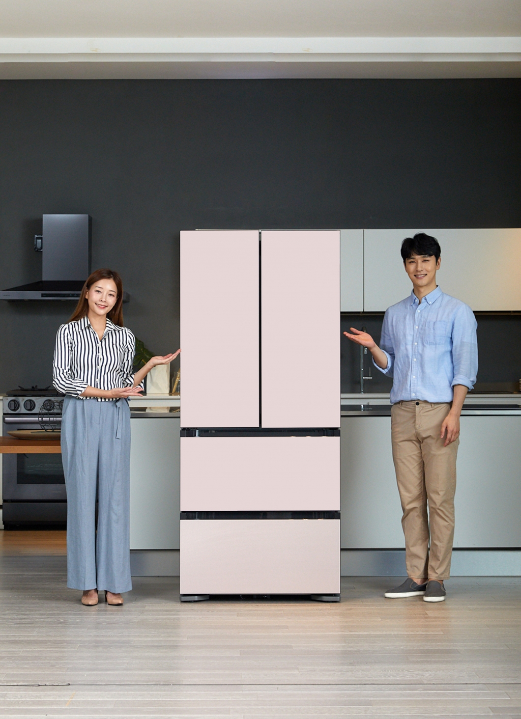 ▲ 삼성전자 모델이 김치냉장고 신제품 ‘김치플러스 비스포크’ 4도어를 소개하고 있다.