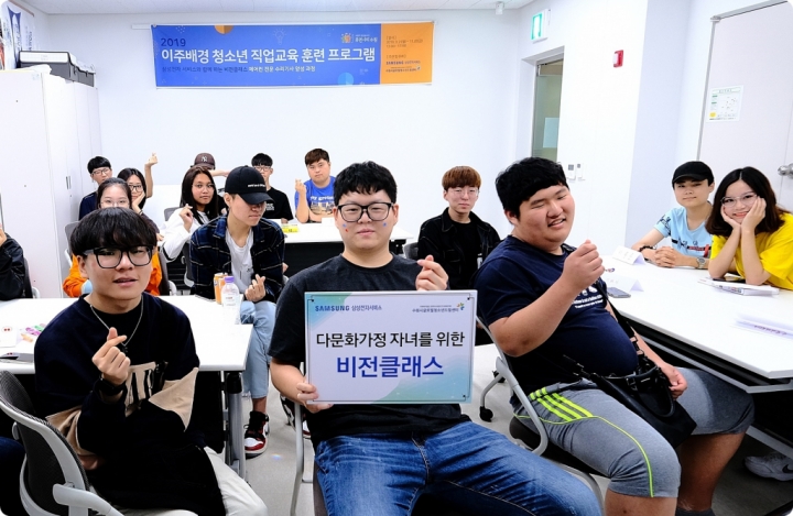 삼성전자서비스(대표이사 심원환)가 9월 2일부터 11월 22일까지 약 3달 동안 수원에 위치한 글로벌청소년센터에서 다문화가정 자녀를 대상으로 직업훈련 교육인 '비전 클래스'를 운영한다.