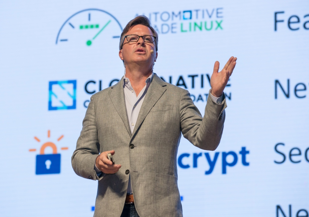 ▲ 16일 삼성전자 서울 R&D 캠퍼스에서 열린 ‘삼성 오픈소스 콘퍼런스’에서 리눅스 재단 짐 젬린 의장이 키노트 스피치를 하고 있다.