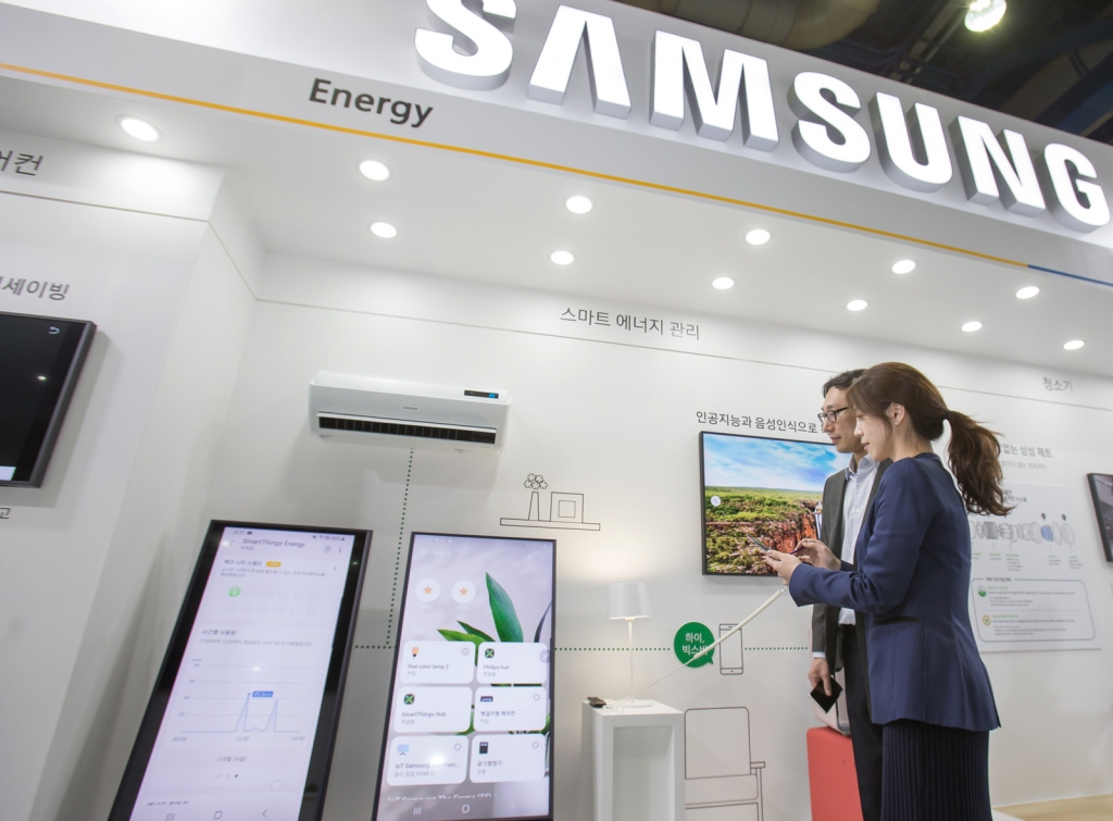 ▲ 10월 23일 서울 코엑스에서 열린 ‘2019 대한민국 친환경대전’에서 삼성전자 직원이 가전제품의 에너지 사용량과 전기료를 손쉽게 관리할 수 있도록 도와주는 ‘스마트싱스 에너지 서비스’를 시연하고 있다.