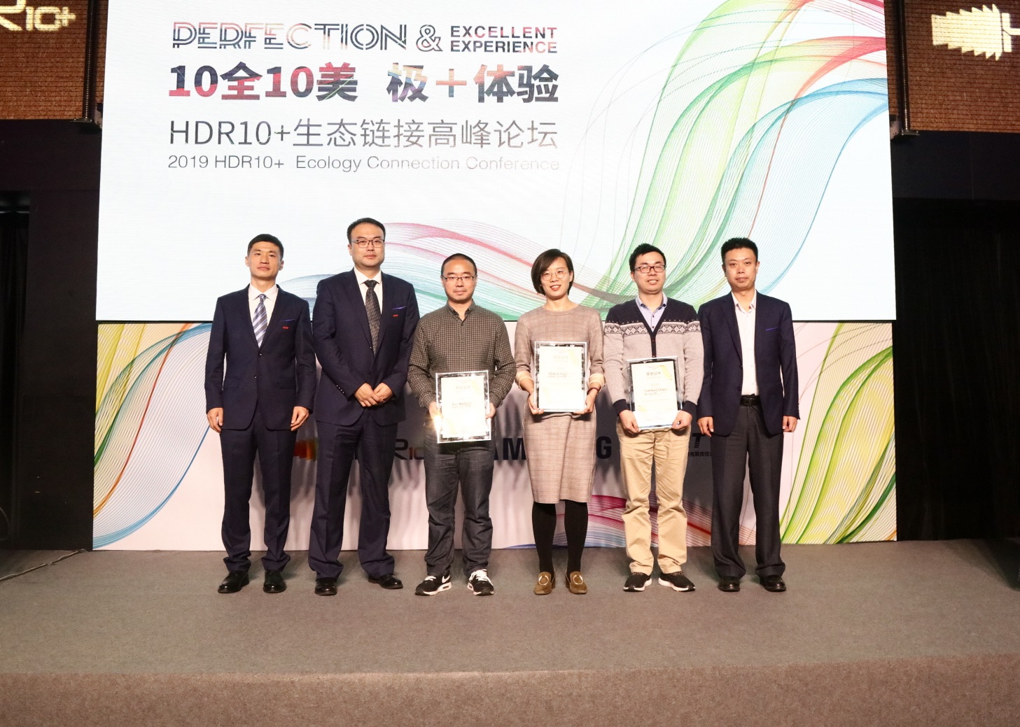 ▲ 삼성전자가 24일(현지 시간) 중국 베이징에서 HDR10+ 세미나를 개최하고 여러 중국 업체들과 함께 HDR10+ 기술 확산에 나선다. HDR10+ 제품 인증 수여식 모습