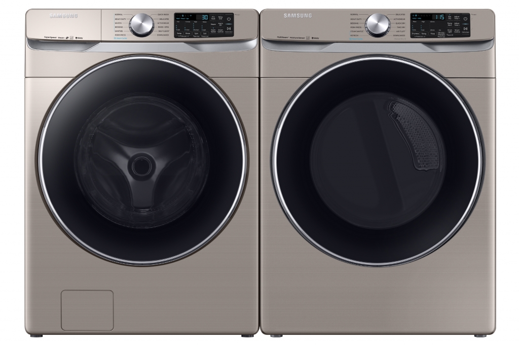 ▲ 삼성전자 세탁기(좌, 모델명: WF45R6300AC)와 건조기(우, 모델명: DVE45R6300C) 세트