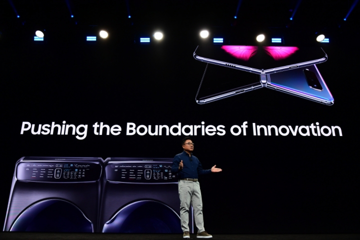 ▲ 10월 29일(현지시간) 미국 캘리포니아주 새너제이 컨벤션 센터에서 진행된 ‘삼성 개발자 콘퍼런스 2019’에서 삼성전자 IM부문장 고동진 사장이 기조 연설을 하고 있다.