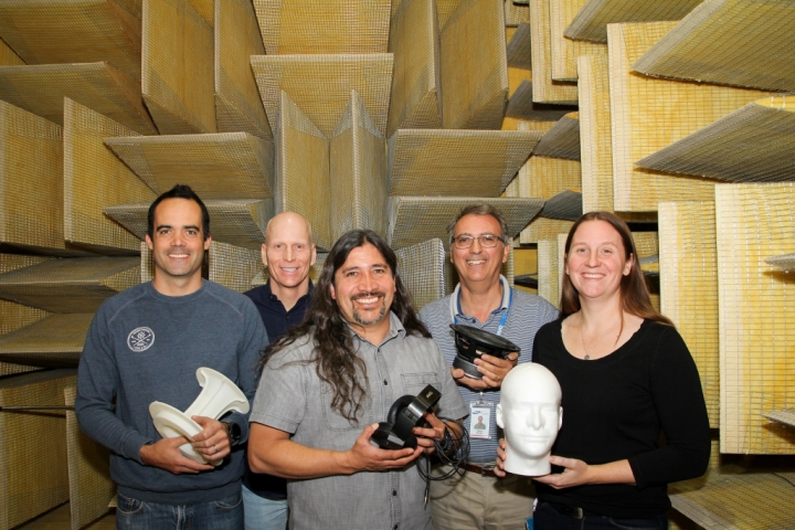 ▲ 삼성전자가 최근 ‘국제 오디오 공학회(AES, Audio Engineering Society) 2019’에서 선정한 논문 상위 10개 목록에 3개를 올리며, 오디오 기술력을 입증했다. 미국 새너제이(San Jose)에 위치한 삼성 리서치 아메리카 오디오랩 ‘무향실’에서 논문 저자들이 음질 테스트 장비를 소개하고 있다.