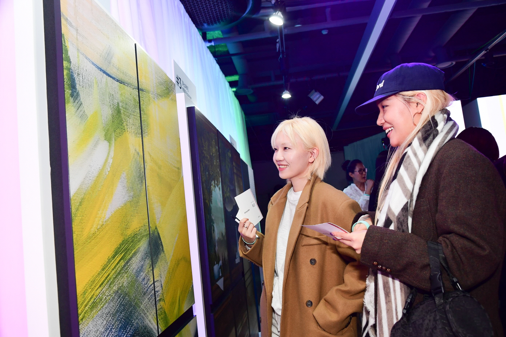 ▲ 삼성전자가 13일 삼성디지털프라자 강남본점 5층에 위치한 라이프스타일 쇼룸 #ProjectPRISM에서 ‘#BESPOKE랑데뷰 파티’를 열고 파이널리스트 10명의 작품 전시와 함께 시상식을 진행했다. 이날 행사에 참가한 관람객들이 전시 작품을 감상하고 있다.