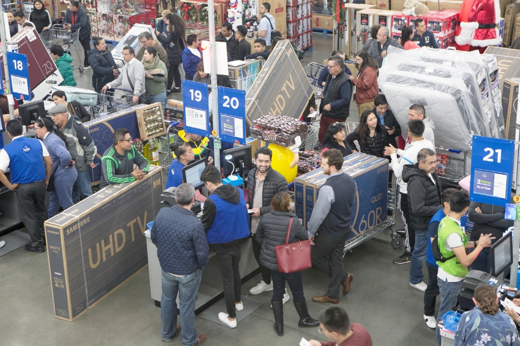 ▲ 멕시코의 블랙 프라이데이라고 불리는 ‘부엔핀(El Buen Fin)’ 행사를 앞둔 14일 자정(현지시간), 멕시코 시티에 위치한 창고형 매장 ‘샘스클럽(Sam’s Club)’에 삼성 TV를 구매하려는 소비자들이 인산인해를 이루고 있다.