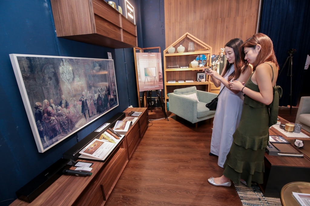 ▲ 체험공간을 방문한 현지 소비자들이 ‘더 프레임(The Frame)’ TV 65형을 체험하고 있다.