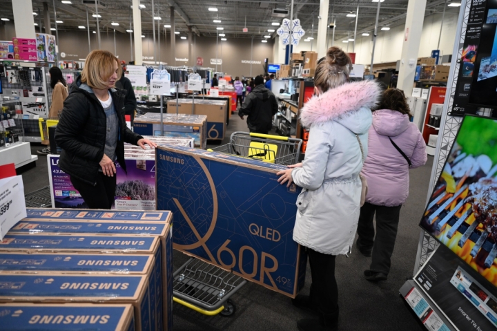 ▲ 지난 달 29일(현지시간) 미국 최대 쇼핑 시즌인 블랙프라이데이를 맞아 뉴저지에 위치한 베스트바이 매장을 찾은 소비자들이 삼성 TV를 구매하고 있다. 삼성 TV는 북미 시장에서 올 3분기 누계로 금액기준 40.1%의 점유율로 압도적 1위를 유지하고 있다.