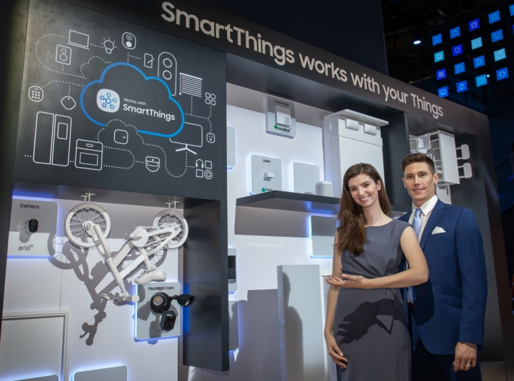▲ 삼성전자는 미국 라스베이거스에서 7일부터 10일까지(현지 시간) 열리는 세계 최대 전자 전시회 CES 2020에서 ‘경험의 시대(Age of Experience)’ 를 주도할 삼성전자의 최신 기술과 제품을 선보인다. 삼성전자 모델들이 다양한 IoT 허브 기기를 삼성전자 스마트싱스(SmartThings)로 연동하는 모습을 소개하고 있다.
