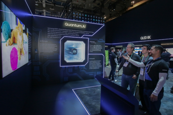 ▲ 7일(현지시간) 미국 라스베이거스에서 열리는 세계 최대 전자 전시회 CES 2020에서 삼성전자 전시관을 방문한 관람객들이 ‘퀀텀닷 AI(Quantum.AI)’가 적용된 ‘QLED 8K’의 생생한 화질을 감상하고 있다.