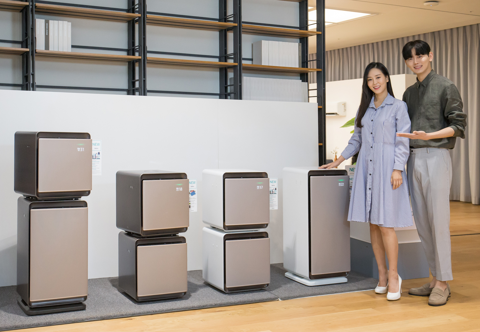 ▲ 삼성전자 모델들이 2020년형 ‘무풍에어컨’과 공기청정기 ‘무풍큐브’를 소개하고있다.