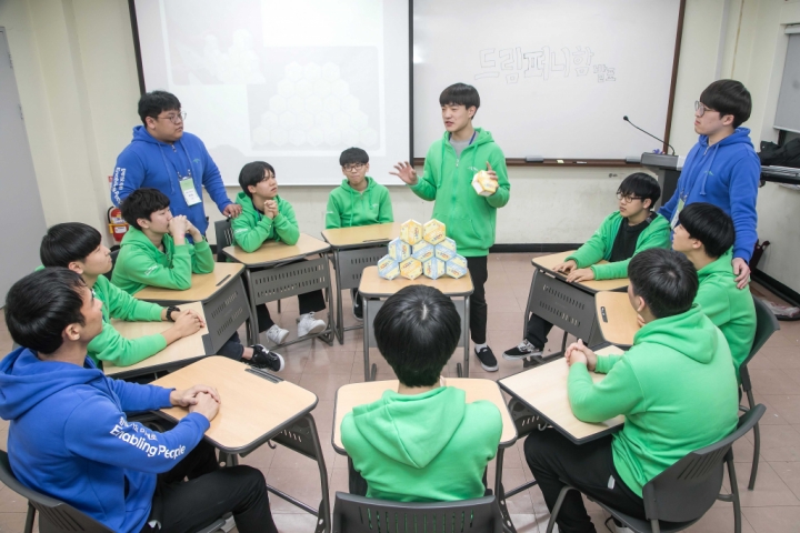 2012년부터 시작한 ‘삼성 드림클래스’는 교육 여건이 부족한 지역의 중학생에게 대학생이 멘토가 돼 학습을 지원하는 삼성전자의 대표적인 교육 사회공헌 프로그램이다.