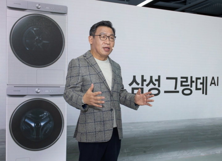 ▲ 이재승 삼성전자 생활가전사업부장(부사장)이 29일 삼성 디지털프라자 강남본점에서 진행된 ‘삼성 그랑데 AI’ 미디어데이에서 신제품을 소개하고 있다.