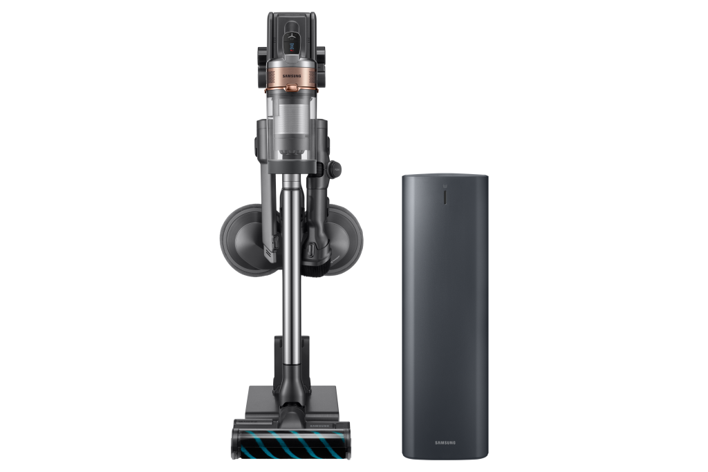 ▲ 2020년형 프리미엄 무선 청소기 ‘삼성 제트’(좌측, 모델명:VS20T9278S7), ‘청정스테이션’(우측, 모델명:VCA-SAE90A)
