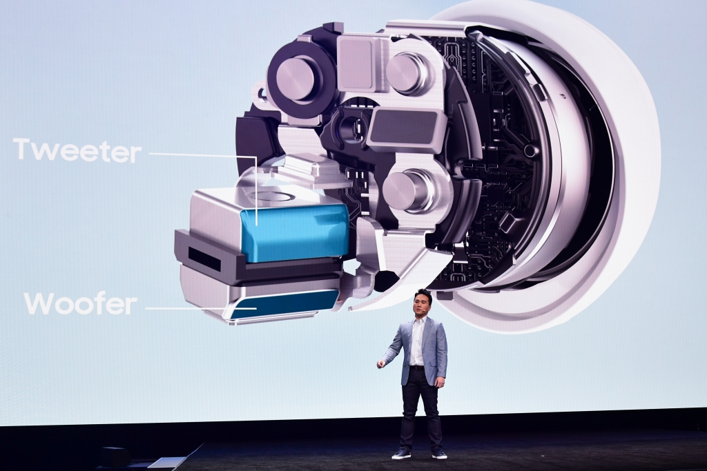 ▲ 계속해서 데이비드 박은 이번에 새롭게 선보인 ‘갤럭시 버즈+’에 대해 소개했다. 그는 새 제품에 대해 “오디오에 대한 안목이 있는 이들을 위한 무선이어폰”이라며 “다이내믹 2-Way 스피커, 강력한 배터리, 스포티파이(Spotify)와 통합 등 다양한 기능이 음악을 더 풍부하게 즐길 수 있게 해줄 것”이라고 밝혔다.