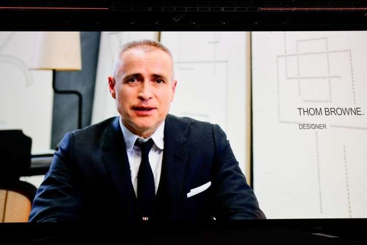 ▲ 영상 메시지로 무대 스크린에 모습을 보인 디자이너 톰 브라운은 삼성전자와 흥미로운 파트너십의 배경에 대해 설명했다. 그는 “이번 기기로 또 하나의 새로운 모바일 경험을 위한 패션과 기술의 결합이 성사됐다”며 “우리는 정말 특별한 것을 창조해냈고, 이를 여러분들과 함께 공유할 수 있기를 열망한다”고 전했다.