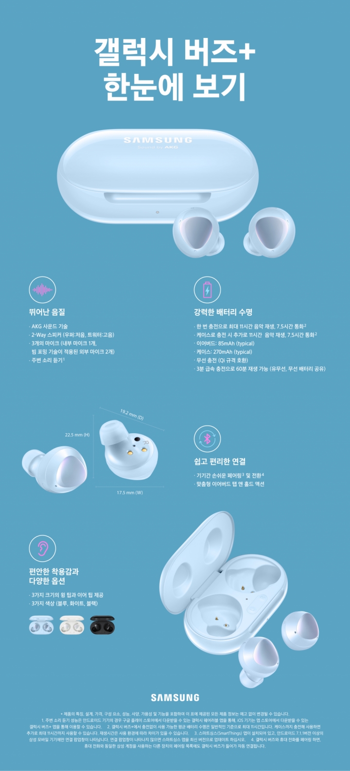 ‘갤럭시 버즈+’의 다채로운 기능을 아래 인포그래픽에서 확인해 보자.