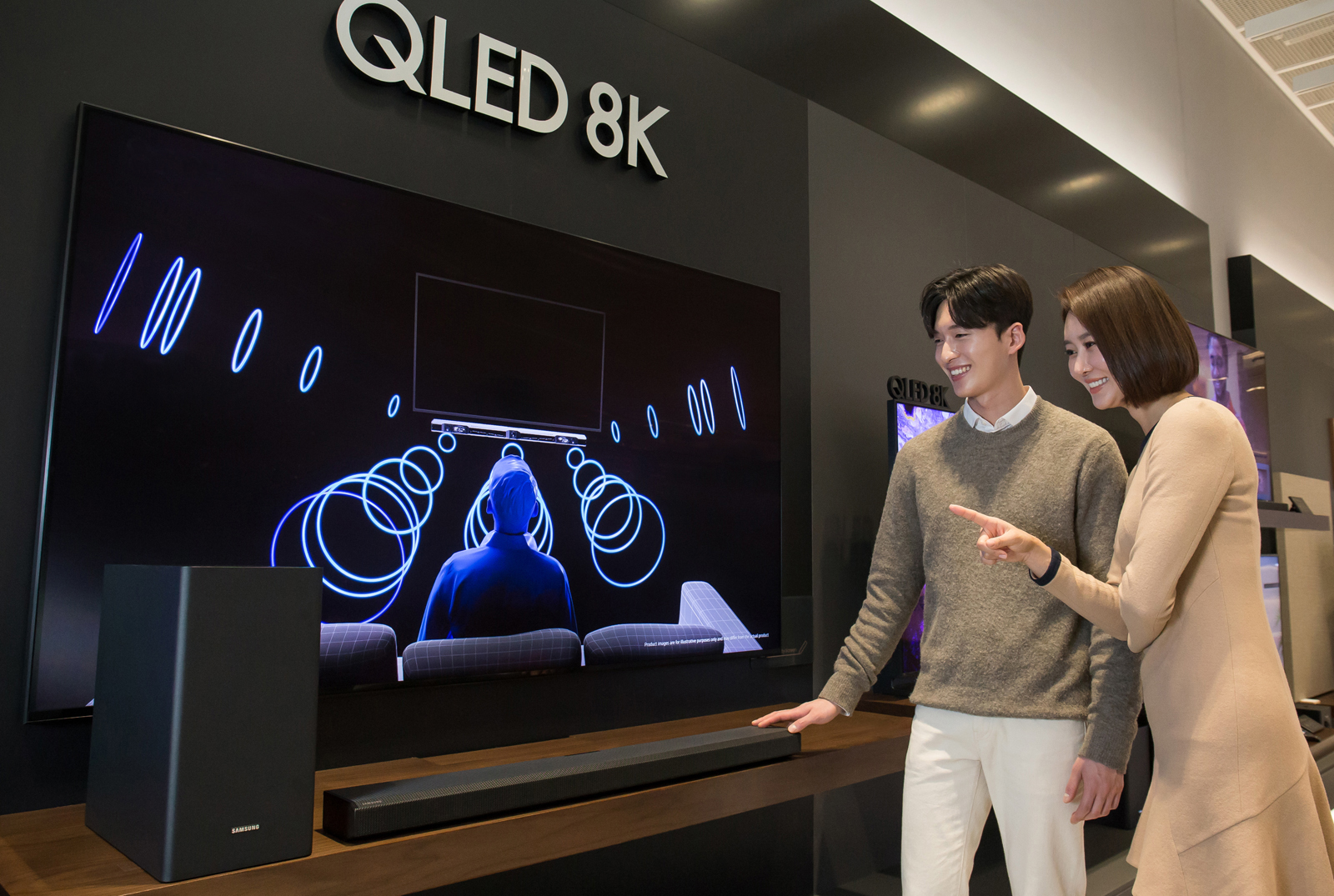 ▲ 삼성전자 모델이 2020년형 Q사운드바(모델명: HW-Q800T) 제품을 소개하고 있다.