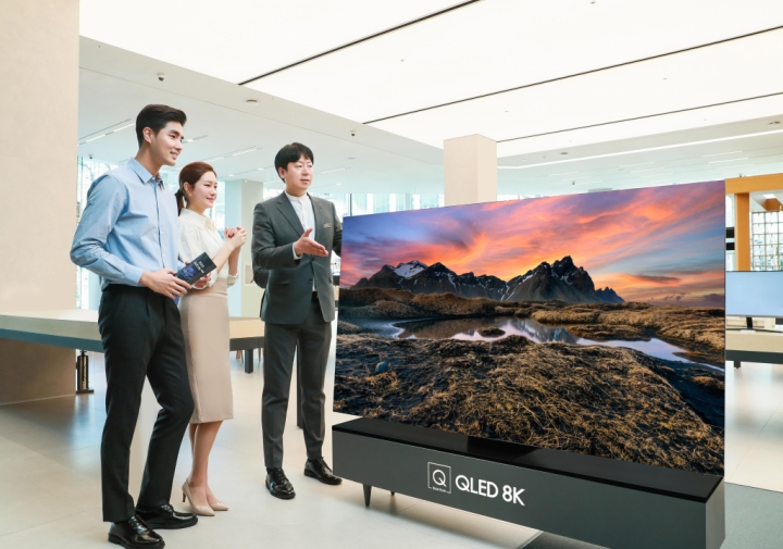 ▲ 판매 상담사가 삼성디지털프라자 삼성대치점에서 2020년형 삼성 QLED TV를 소개하고 있다.
