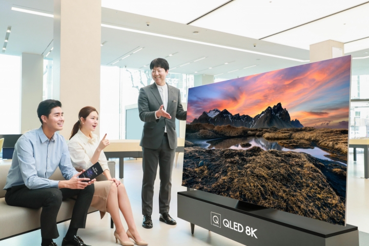 ▲ 판매 상담사가 삼성디지털프라자 삼성대치점에서 2020년형 삼성 QLED TV를 소개하고 있다.