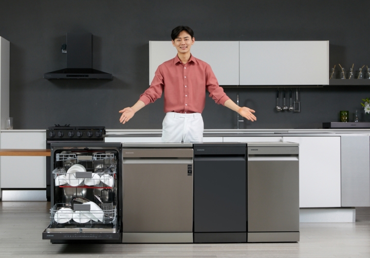 ▲ 삼성전자 모델이 수원 삼성전자 디지털시티 프리미엄하우스에서 한국인의 식생활에 최적화된 성능과 위생, 사용 편리성을 갖춘 삼성 식기세척기 신제품을 소개하고 있다.