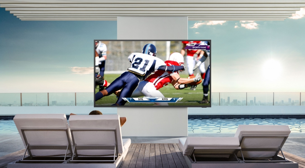 더 테라스는 실외 환경에서도 뛰어난 내구성은 물론 한낮에도 선명한 영상을 즐길 수 있도록 시인성을 높인 아웃도어 TV이다.