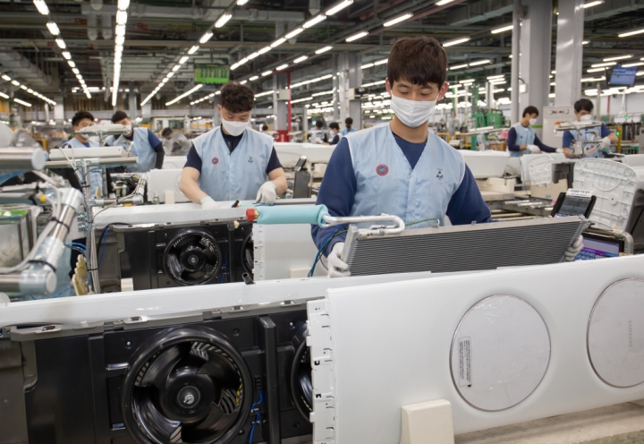 광주광역시 광산구 하남산단 6번로에 위치한 삼성전자 광주사업장에서 직원들이 ‘무풍에어컨’을 생산하고 있다.