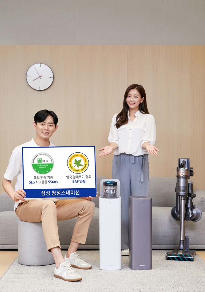 삼성전자 ‘청정스테이션’이 최근 독일 유력 시험·인증 기관인 SLG(Schubert Leiter Geratesicherheit)와 영국 알레르기협회 BAF (British Allergy Foundation)에서 미세먼지와 알레르기 유발 물질 배출 차단 성능을 인증받았다.