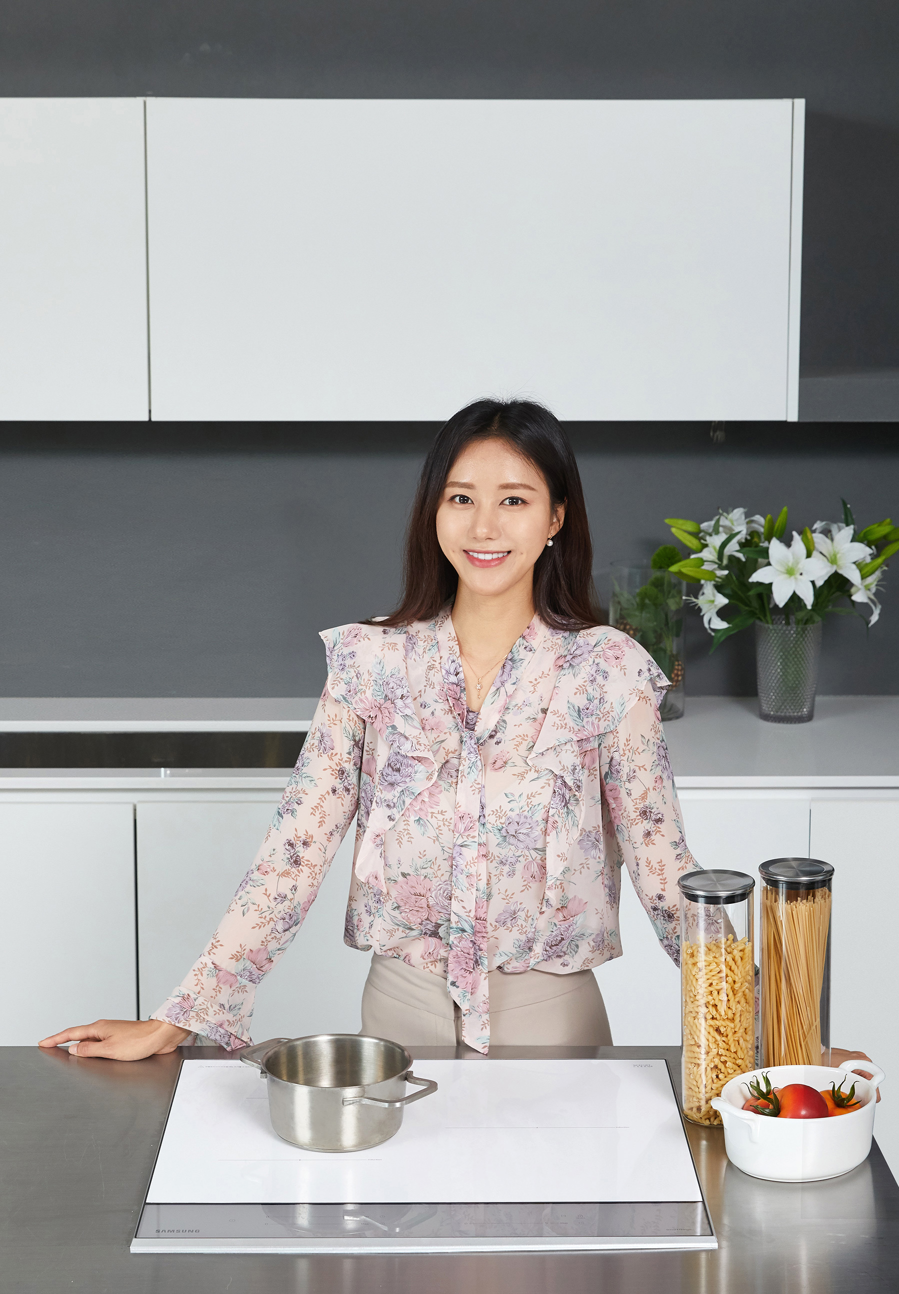 ▲ 삼성전자 모델이 수원 삼성전자 디지털시티 프리미엄하우스에서 삼성 전기레인지 ‘8올 인덕션’ 신제품을 소개하고 있다.