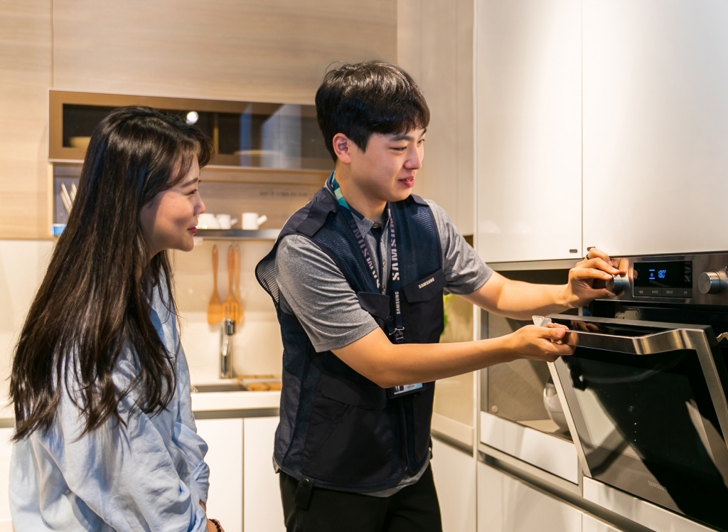 ▲ 수리 엔지니어가 고객에게 제품 사용방법을 설명하고 있는 모습