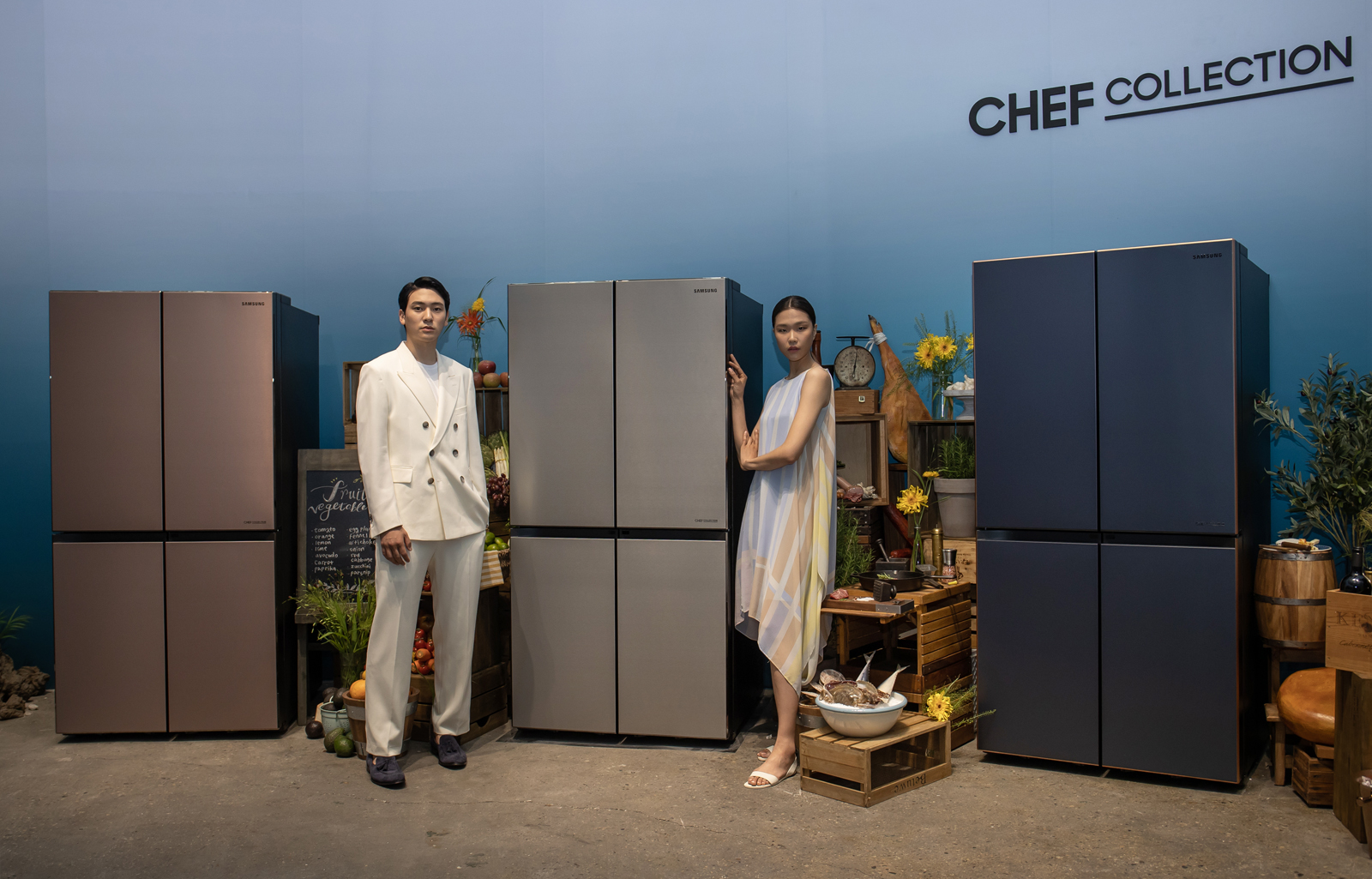 ▲ 삼성전자 모델이 서울 성수동에 마련된 체험존에서 ‘뉴 셰프컬렉션’ 냉장고를 소개하고 있다.