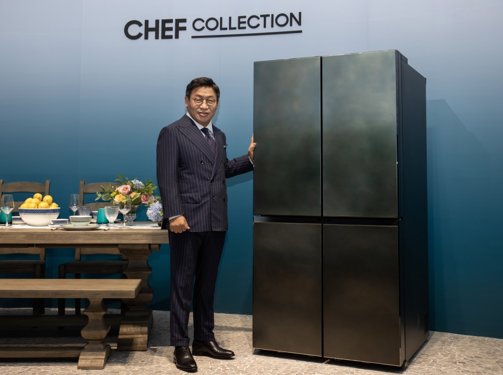 ▲ 이재승 삼성전자 생활가전사업부장이 서울 성수동에 마련된 체험존에서 ‘뉴 셰프컬렉션’ 냉장고를 소개하고 있다.