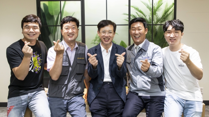 ▲ (왼쪽부터) 서강이엔씨 김정식 과장, 화성엔지니어링 김도형 전무, 삼성전자 DS부문 상생협력센터 김창한 전무, 화성엔지니어링 류성목 대표, 서강이엔씨 김현석 사원