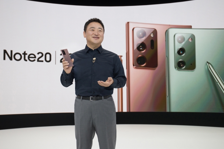 ▲ 사상 처음으로 온라인으로 진행된 ‘갤럭시 언팩 2020’에서 삼성전자 무선사업부장 노태문 사장이 ‘갤럭시 노트20 울트라’를 소개하는 모습