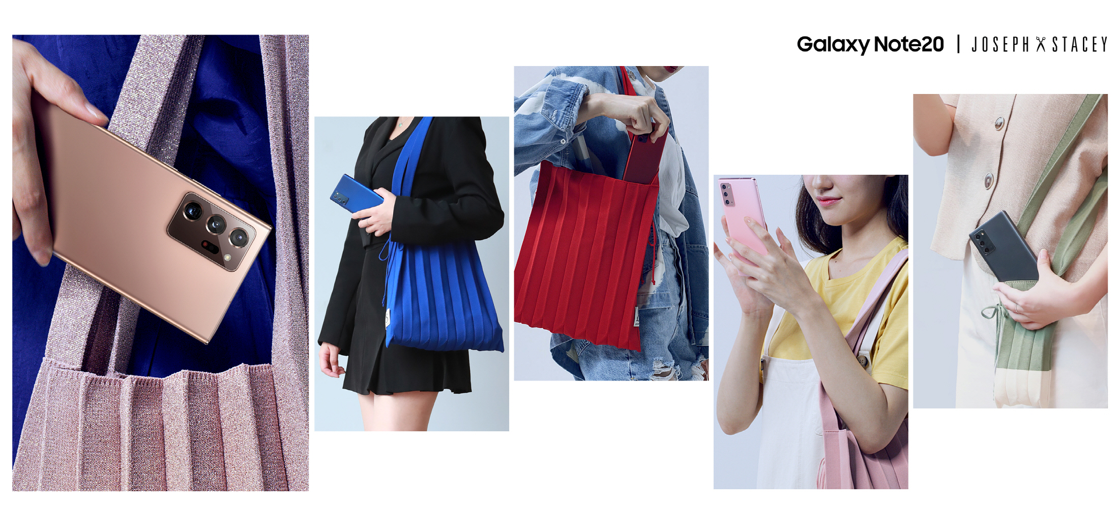 ▲ ‘갤럭시 노트20’의 7가지 미스틱 컬러와 ‘조셉앤스테이시’의 플리츠 니트백을 감각적으로 매칭한 이미지