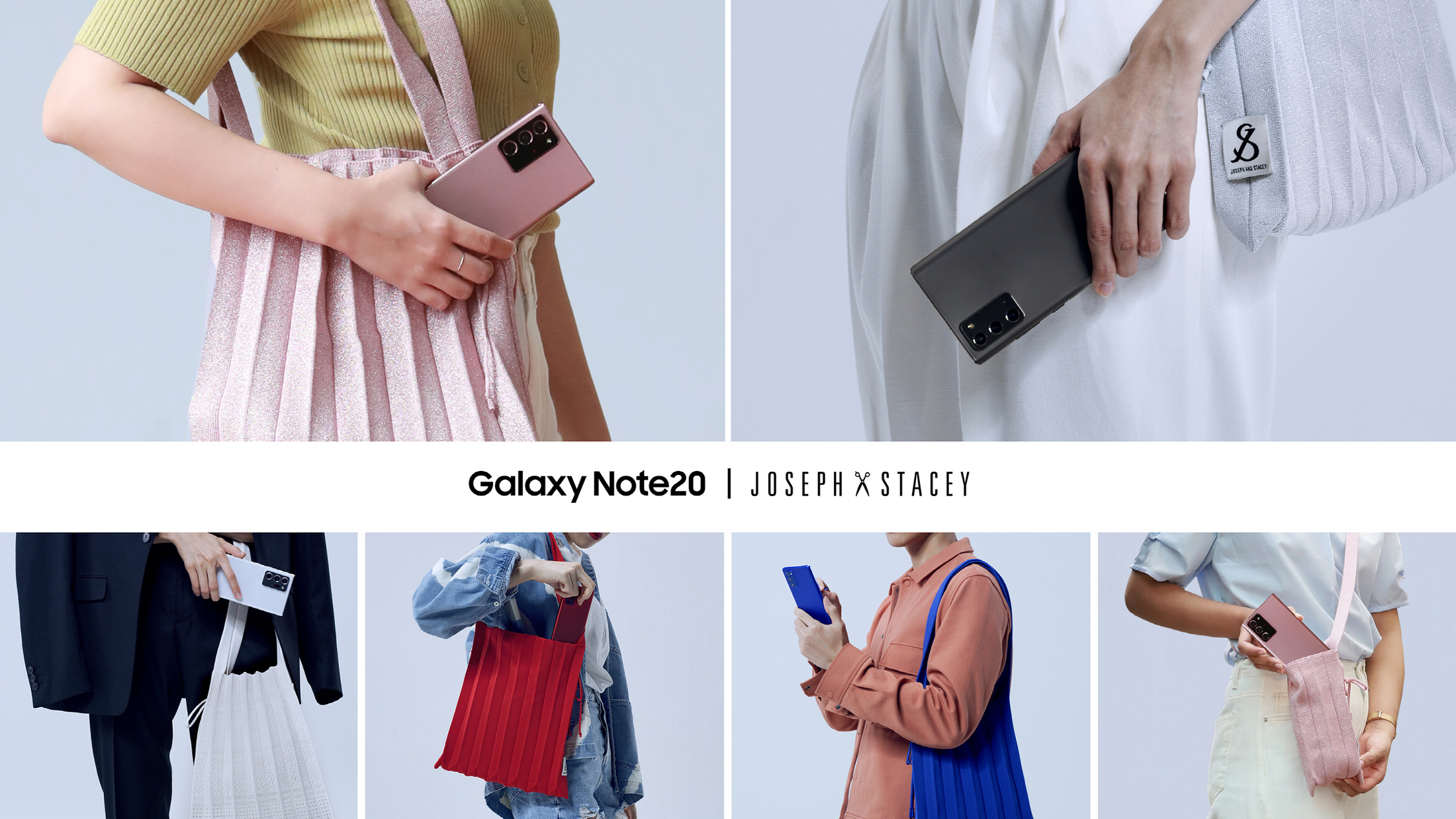 ▲ ‘갤럭시 노트20’의 7가지 미스틱 컬러와 ‘조셉앤스테이시’의 플리츠 니트백을 감각적으로 매칭한 이미지