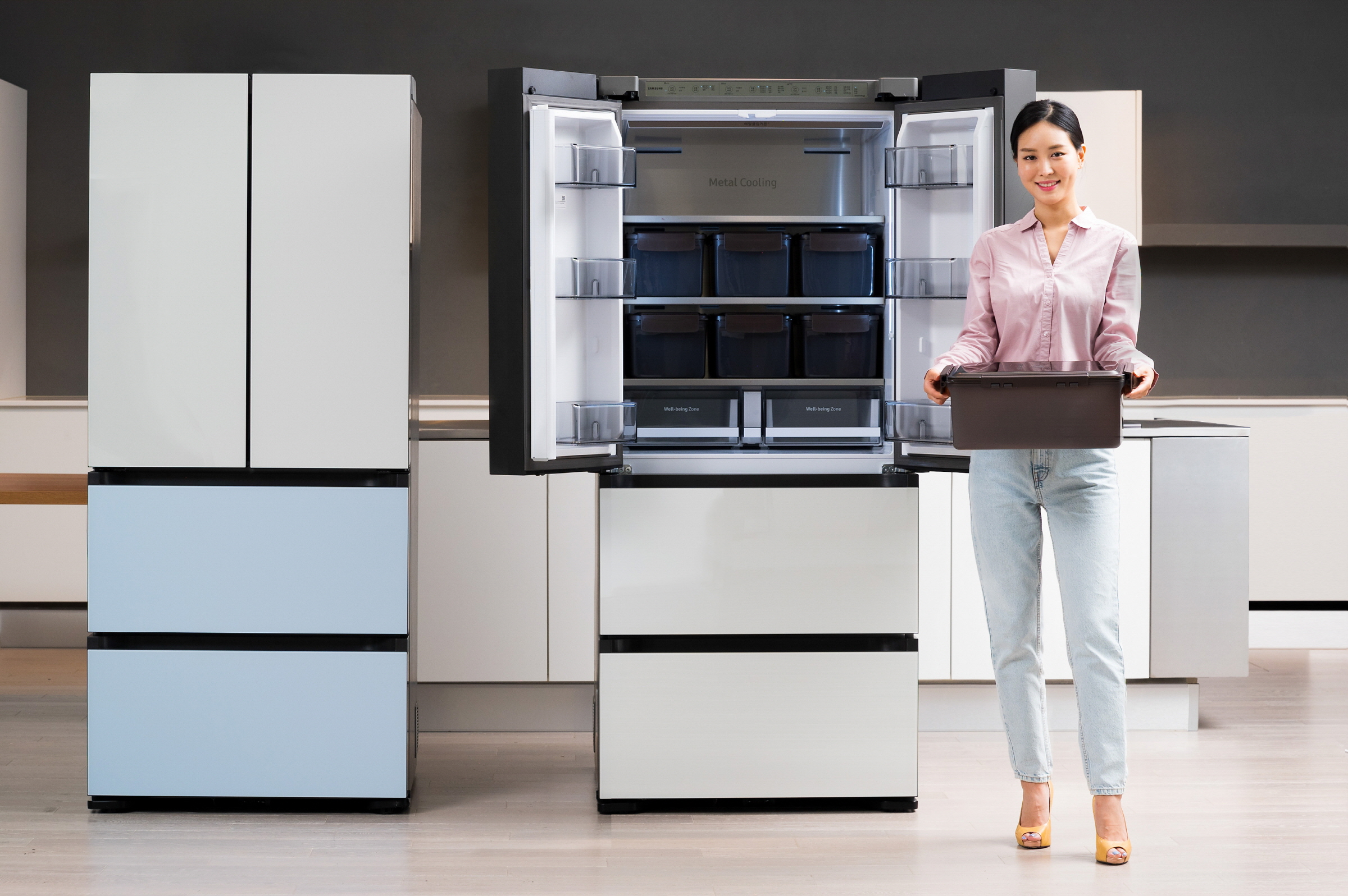 ▲ 삼성전자 모델이 수원 삼성디지털시티 프리미엄하우스에서 프리미엄 김치냉장고 신제품 ‘비스포크 김치플러스’를 소개하고 있다.