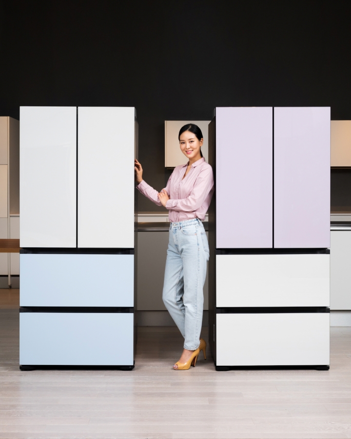 ▲ 삼성전자 모델이 수원 삼성디지털시티 프리미엄하우스에서 프리미엄 김치냉장고 신제품 ‘비스포크 김치플러스’를 소개하고 있다.
