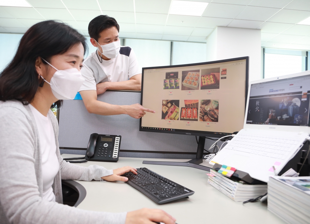 ▲ 삼성전자 임직원들이 ‘추석 맞이 온라인 장터’에서 쇼핑을 하는 모습